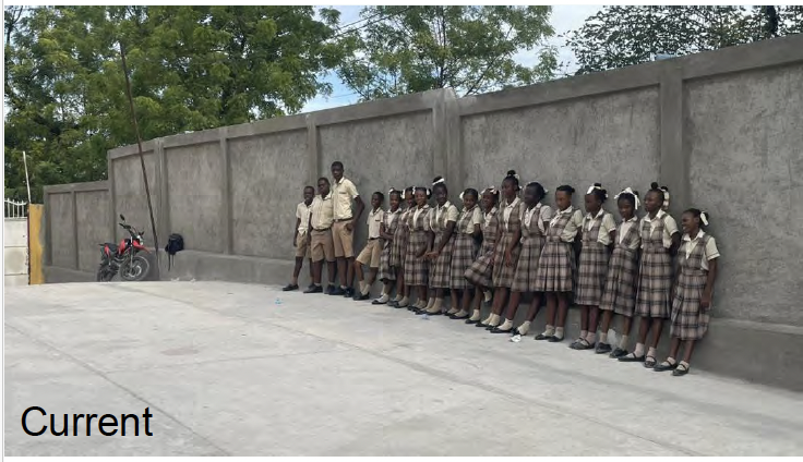 The Dubuisson Christian School is located near Mirebalais – an area affected by gang activity. To improve security, the school has requested funds to raise the perimeter wall by at least two feet and install protective razor wire along the top. Strengthening the school’s boundaries will help deter intrusions and provide a safer, more secure environment where children can learn without fear.
