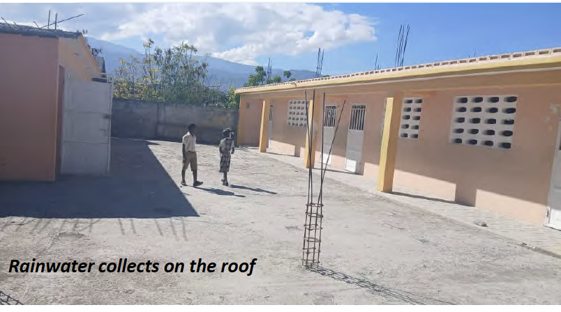 At Cazeau Christian School, the rooftop area adjacent to the kitchen lacks an adequate drainage system. When it rains or when dirty water from kitchen sinks is emptied, the water collects and remains standing on the roof. This creates unhealthy conditions, increases the risk of contamination, and exposes children to potential illness. The school has requested the construction of a puisard—a wastewater soak pit—to safely drain and dispose of this water, improving sanitation, protecting student health, and preventing ongoing water buildup.